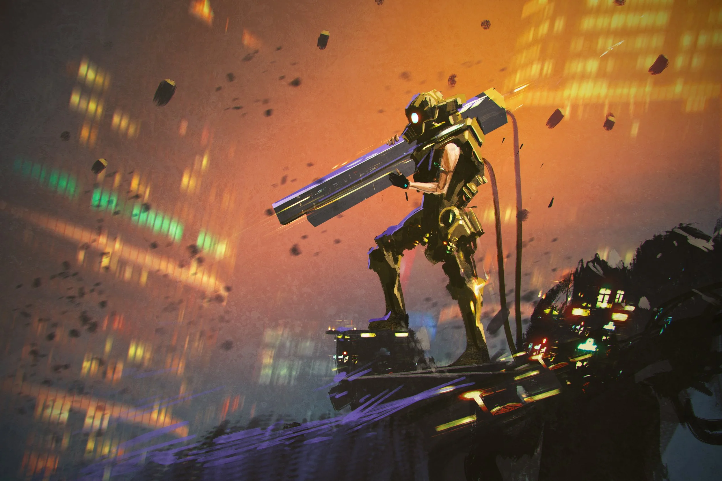 Cultural Fusion Era — Myth-infused technology becomes democratized. Street-level inventors and guilds rival corporate labs in innovation.